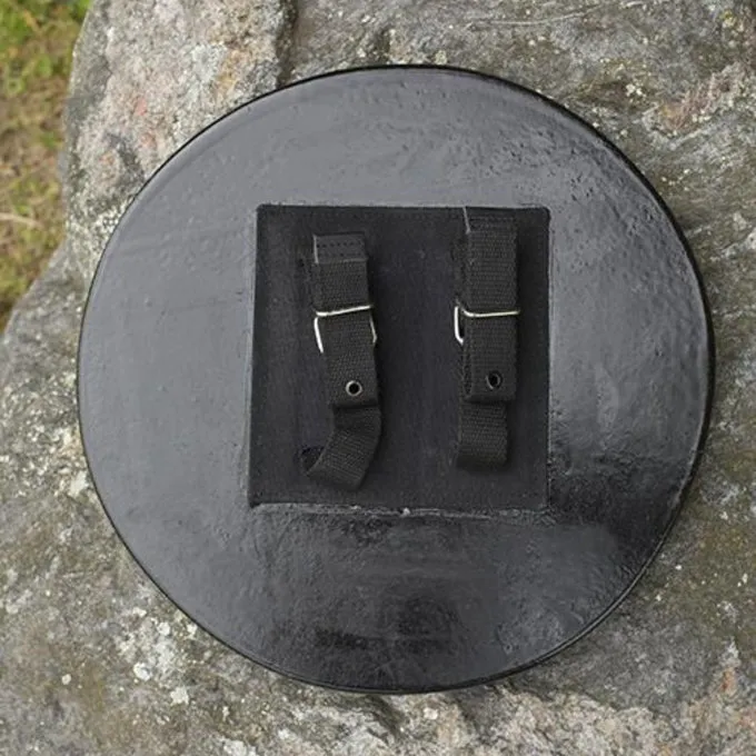 Details/Material: Foam, latex/Kleur: zwart met gouden rand/Diameter 36 cm/Lengte grip: 17 cm/Breedte grip: 17 cm/Dikte: 2,5 cm/Gewicht: 175 g/Ook geschikt voor beginnende roleplayers/Duurzaam foam/Voldoet aan hoge veiligheidseisen/Stevige latex coating/Gl