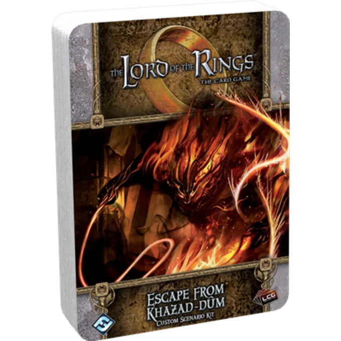 Neem je lot in eigen handen met ontsnapping uit Khazad-dûm ! Deze aangepaste scenario-kit voor The Lord of the Rings: The Card Game duikt je in de diepten van Khazad-Dûm waar je de kans hebt om je eigen scenario te bouwen! Met zeven questkaarten en zeventig mogelijke ontmoetingskaarten kan je team van helden een nieuw hoofdstuk aan hun staart toevoegen in de standaard coöperatieve modus of een ander team uitdagen in een spannende race naar de finish!