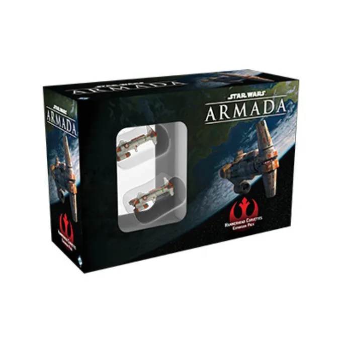Brace voor impact met de Hammerhead Corvettes Expansion Pack voor Star Wars ™: Armada! Vernoemd naar zijn onderscheidende silhouet, wordt de Hammerhead Corvette officieel geclassificeerd als een transport, maar beschikt over gevechtswaardige motoren, romp en bewapening. Hammerheads, vaak in groepen, lenen zich vaak voor de vormingstactieken met hun behendigheid en reactievermogen. Je zult in staat zijn om enkele van deze vormingstactieken te verkennen met de twee voorschilderde Hammerhead-miniaturen van de uitbreiding, en je zult ze ondersteund door twee scheepskaarten, evenals een volledige aanvulling van veertien upgrade-kaarten die zwaar zijn gericht op close-range Vechten!
