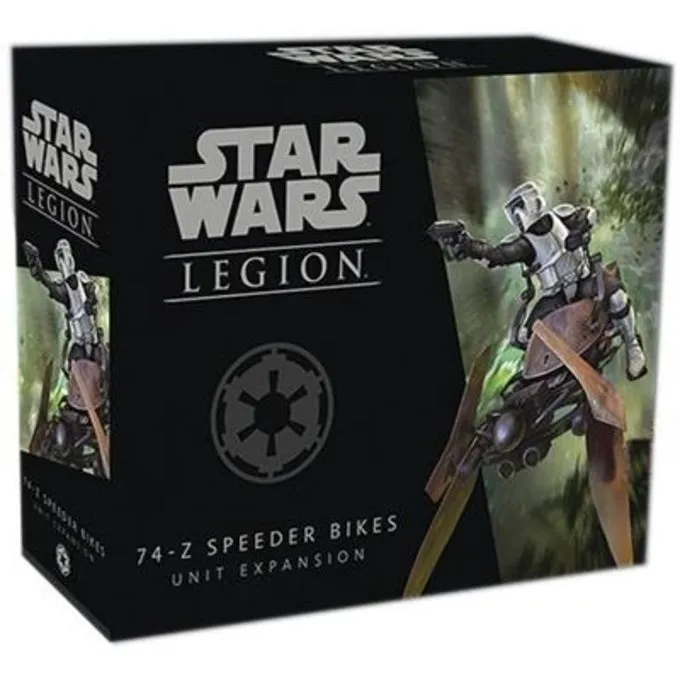 De uitbreiding van de 74-Z Speedher Bikes-eenheid omvat een eenheid van twee 74-Z speedherasfietsen, en alle eenheidskaarten en upgrade-kaarten die u nodig hebt om uw krachten uit te breiden met deze bliksemsnelle speeders.